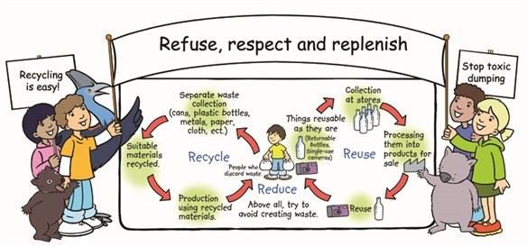 REDUCE, REUSE, RECYCLE, RESPECT, REPLENISH AND